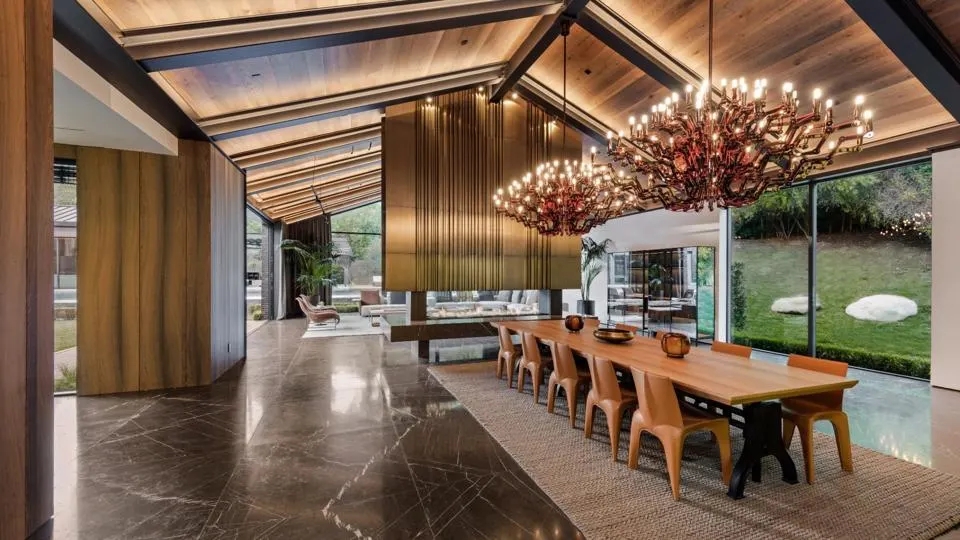 該處豪宅總占地1.5英畝(約6070平方米),位于好萊塢西部的隱山市富人社區,宅內共有七間臥室,八個浴室,套內面積12000平方英尺(約1114平方米)。配套設施包括兩個泳池、一棟客房、健身房、花園、車庫、影音房、禪思房和家庭娛樂室。