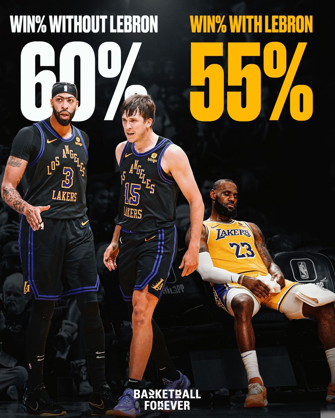湖人本賽季在缺少詹姆斯時6勝4負 勝率60%