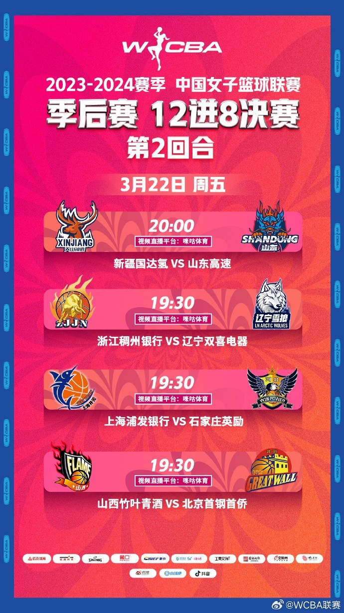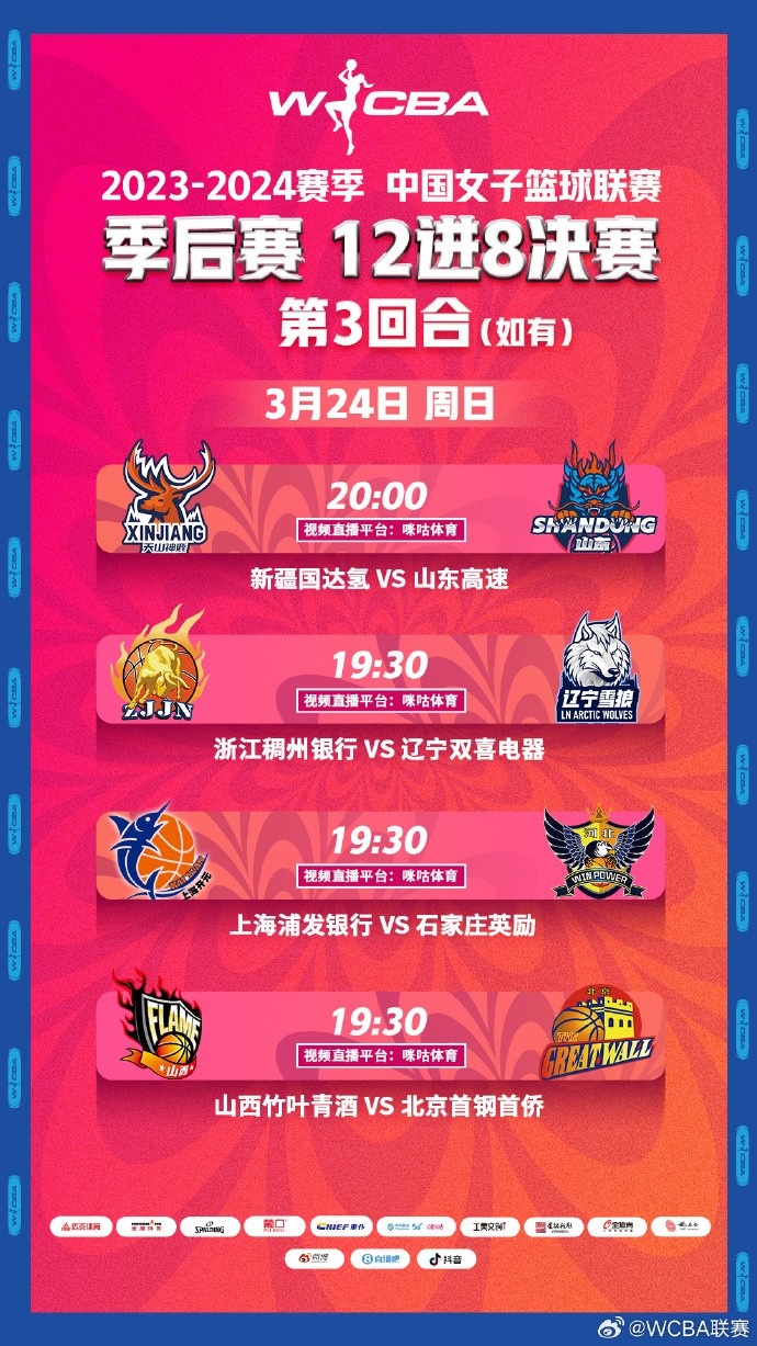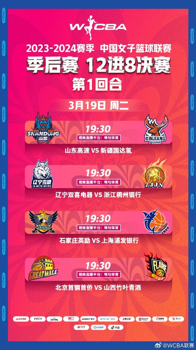 常規賽排名前12的隊伍進入季后賽,現公布2023-2024賽季WCBA季后賽對陣圖及季后賽12進8決賽賽程安排。