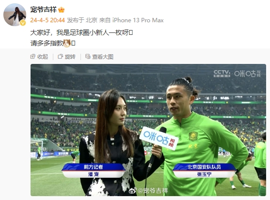 北京國安原跟隊記者潘寵最近復出了,重返工體,不過一上來就口誤,把張稀哲說成張玉寧。