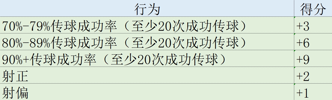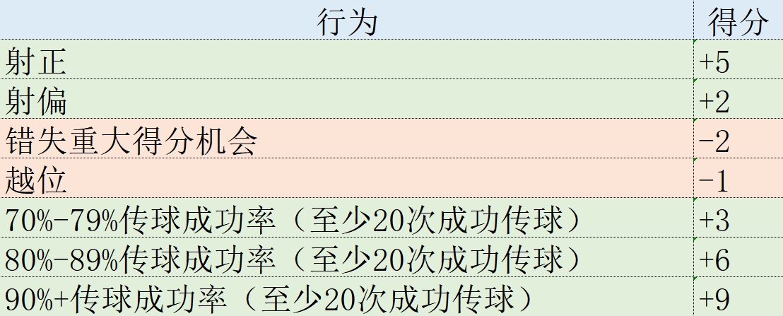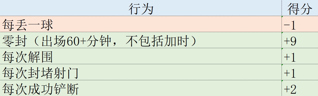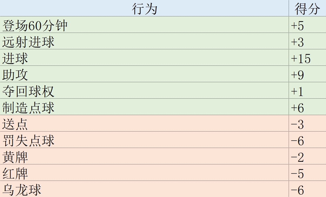 某些場上行為所產(chǎn)生的積分,例如進球、助攻和奪回球權(quán),對所有位置的球員都是相同的。其他數(shù)據(jù)則取決于每個球員的具體位置。例如,零封、成功鏟斷和封堵是防守球員的關(guān)鍵數(shù)據(jù),而射門和成功傳球是中場和前鋒的重要指標。