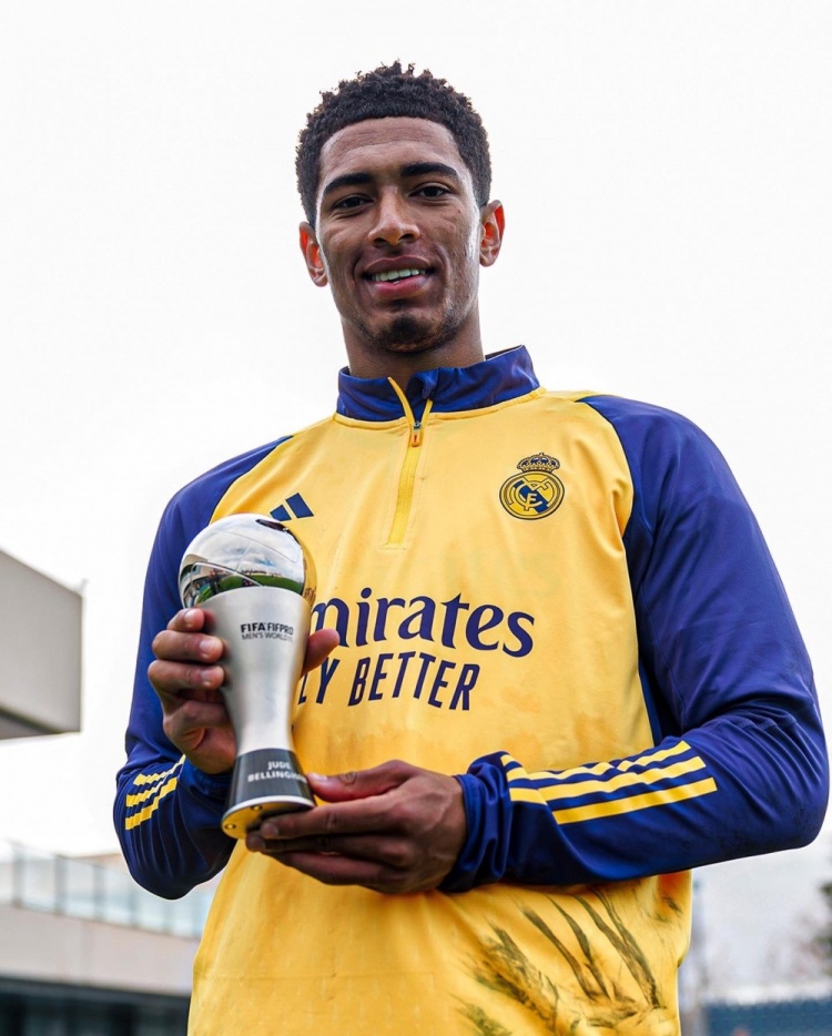 1月18日訊 貝林厄姆更新社媒,曬出自己領取FIFA年度最佳陣容獎杯的照片。