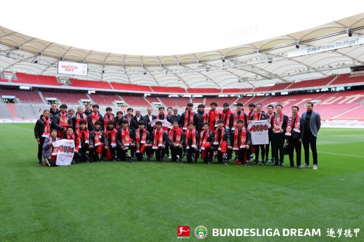 帶著些許遺憾與期待,中國U-16男足在第二周來到了斯圖加特足球俱樂部。球隊剛抵達就受到了俱樂部和中國駐德國大使館的高度重視,中國駐德國大使吳懇、斯圖加特足球俱樂部主席亞歷山大·維爾勒(Alexander Wehrle)及德甲相關官員看望慰問了中國U-16男足一行,邀請球隊登上斯圖加特主場-MHP競技場(MHPArena)的德甲比賽草坪共同合影留念,還邀請球員們現場觀看了隨后開始的德甲聯賽,零距離感受德甲火熱的球迷氛圍。