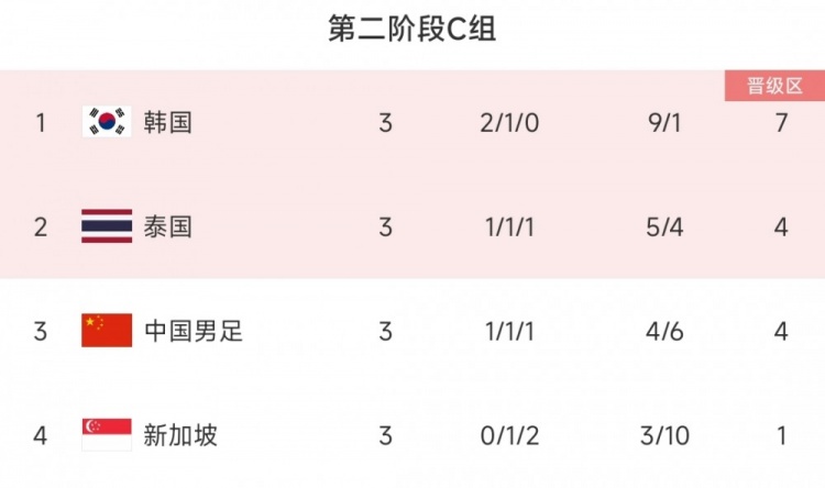 C組:韓國(guó)1-1泰國(guó)、新加坡2-2中國(guó)