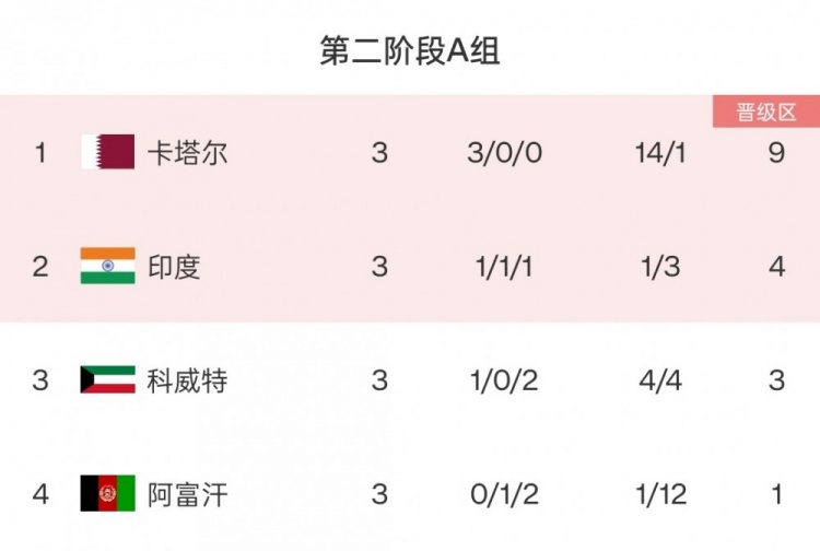A組:卡塔爾3-0科威特、阿富汗0-0印度