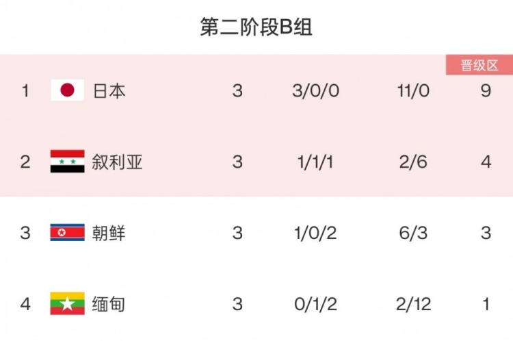 B組:日本1-0朝鮮、緬甸1-1敘利亞