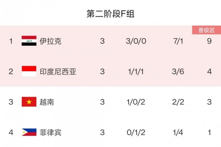 F組:伊拉克1-0菲律賓、印尼1-0越南