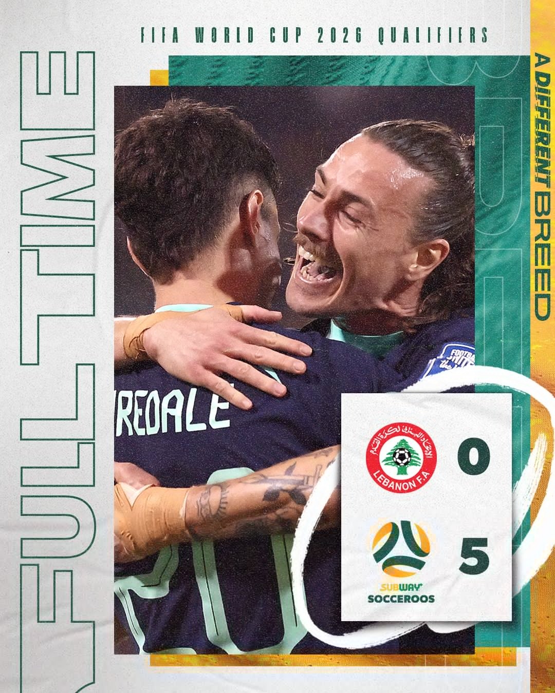 03月26日訊 世預賽亞洲區(qū)I組結束第四輪的一場較量,澳大利亞客場5-0大勝黎巴嫩,澳大利亞4戰(zhàn)全勝打入15球且1球未丟,提前2輪晉級,成為首支晉級18強賽的球隊。