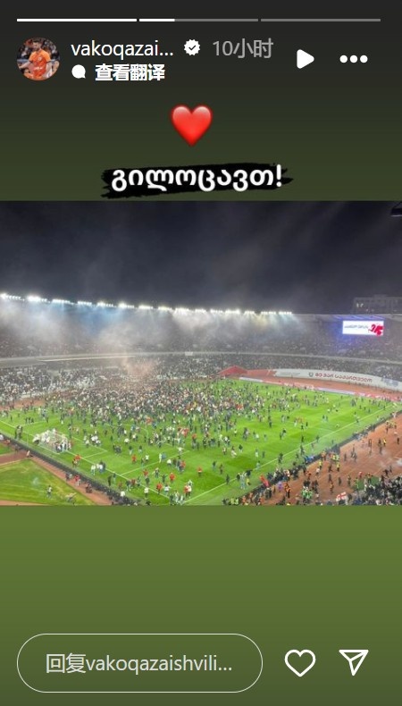 在個人社媒,卡扎伊什維利曬出球迷沖進球場的照片,慶祝格魯吉亞殺入歐洲杯。現年31歲的卡扎伊什維利本賽季加盟泰山,他此前為格魯吉亞隊出戰63次打進13球,上次為球隊出戰是2022年9月。