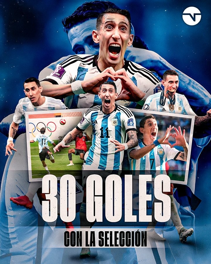 據統計,這是迪馬利亞在國家隊打進的第30球。