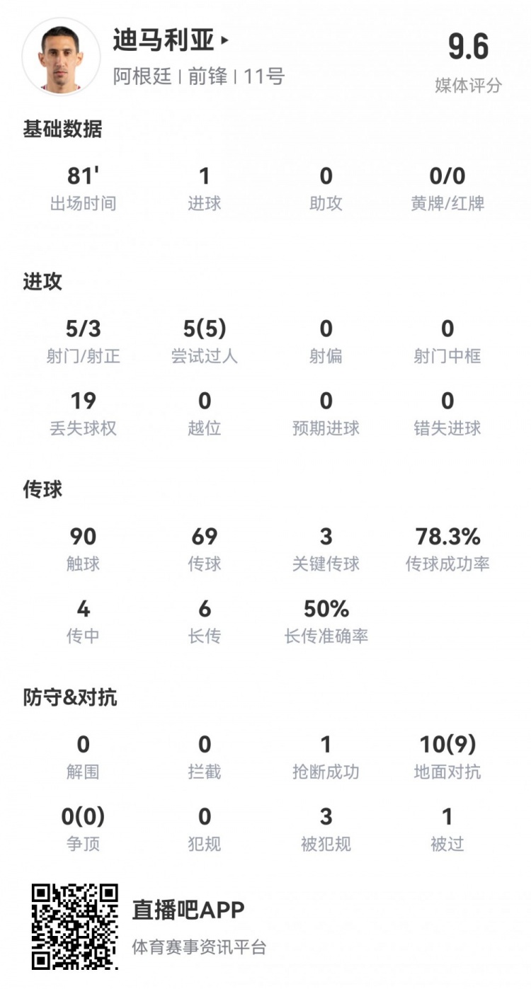 3月27日訊 正在進行的友誼賽,阿根廷3-1暫時逆轉領先哥斯達黎加。迪馬利亞任意球世界波幫助阿根廷扳平比分,球員全場重點數據如下↓