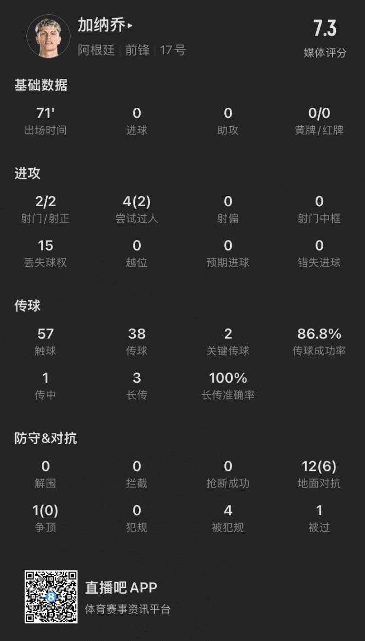 3月27日訊 阿根廷對(duì)陣哥斯達(dá)黎加的友誼賽正在進(jìn)行。本場比賽,19歲加納喬首次代表國家隊(duì)首發(fā)出戰(zhàn),在第72分鐘被勞塔羅替換下場,獲評(píng)Sofascore7.3分的評(píng)分。