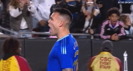 下半場勞塔羅破門打破一年半球荒,勞塔羅踢了一下廣告牌并怒吼慶祝。