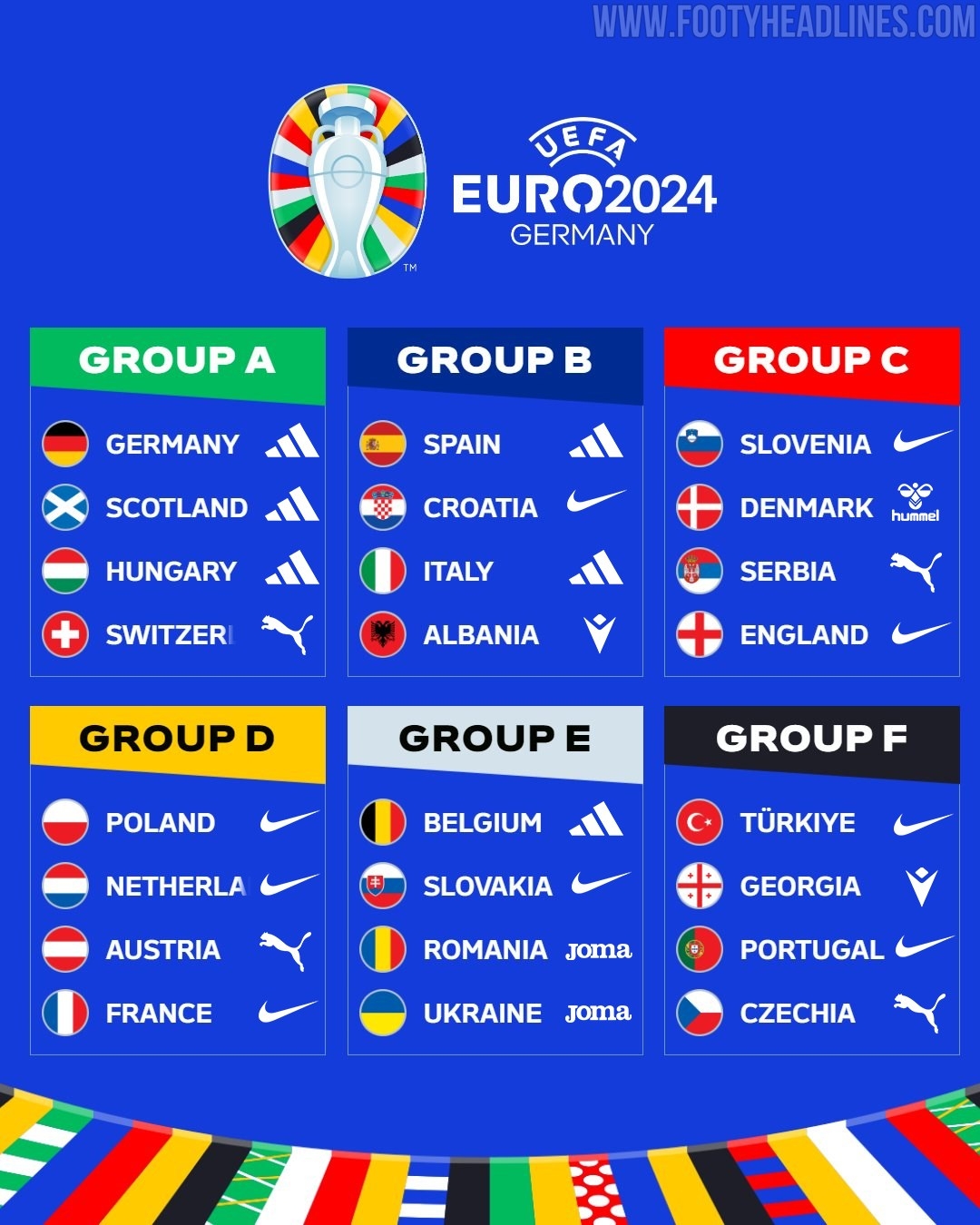3月27日訊 2024歐洲杯將在今夏拉開帷幕,footyheadlines也統計了本屆歐洲杯24支球隊的球衣贊助商。