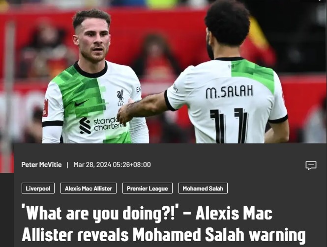 3月28日訊 利物浦中場麥卡利斯特接受采訪時講述了一件趣事,他第一次穿著長褲參加紅軍的訓練時,被薩拉赫“教訓”了。