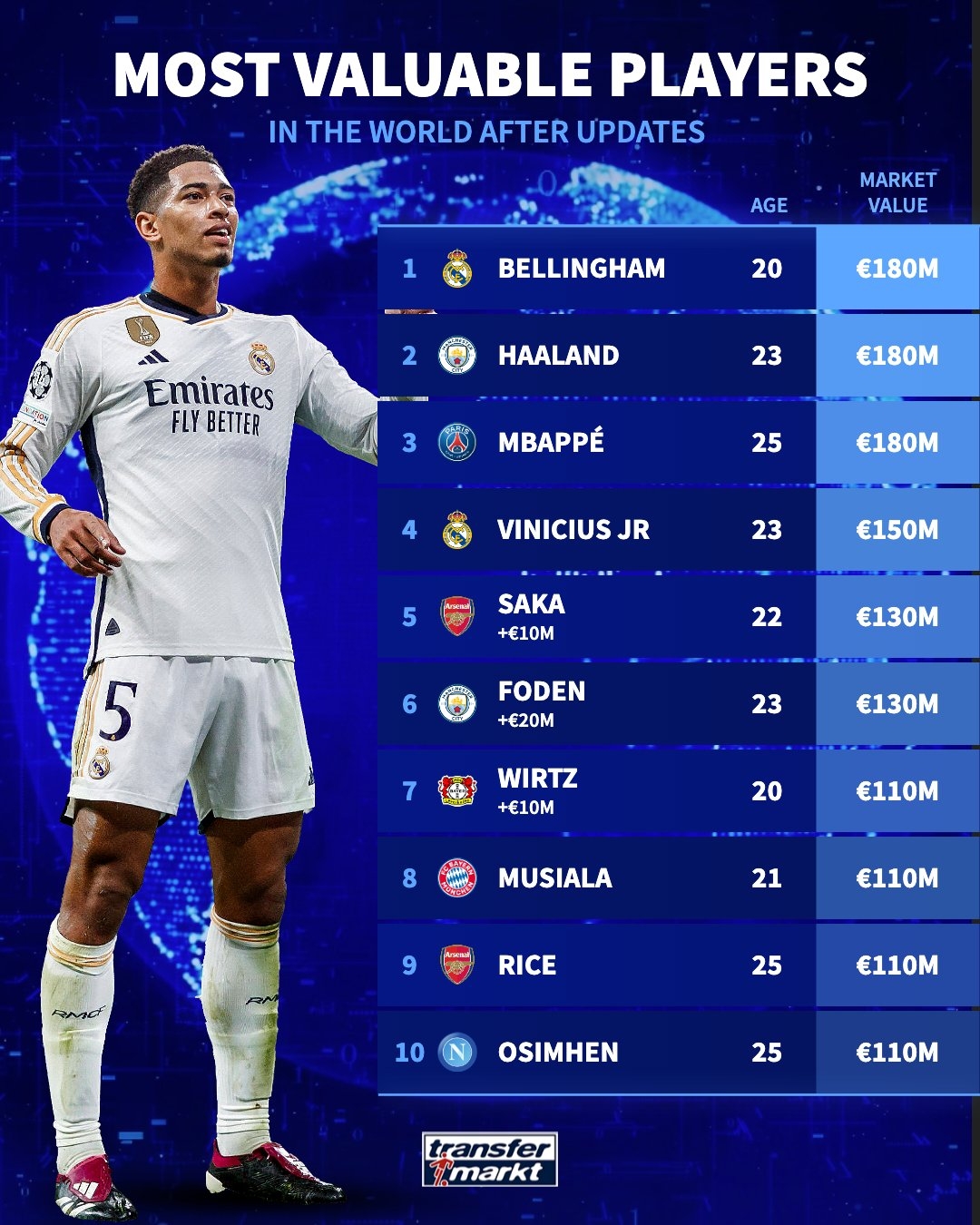 1-貝林厄姆(皇家馬德里):1.8億歐