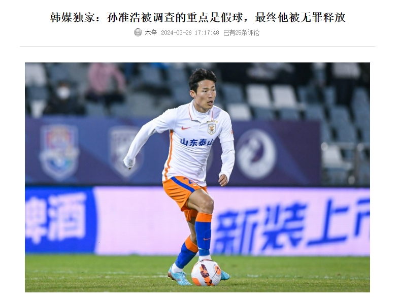 泰山韓國外援孫準浩今日被釋放回國,媒體人徐江在回復球迷中保證,孫準浩下球了。